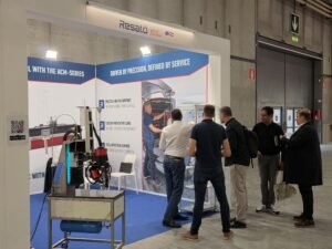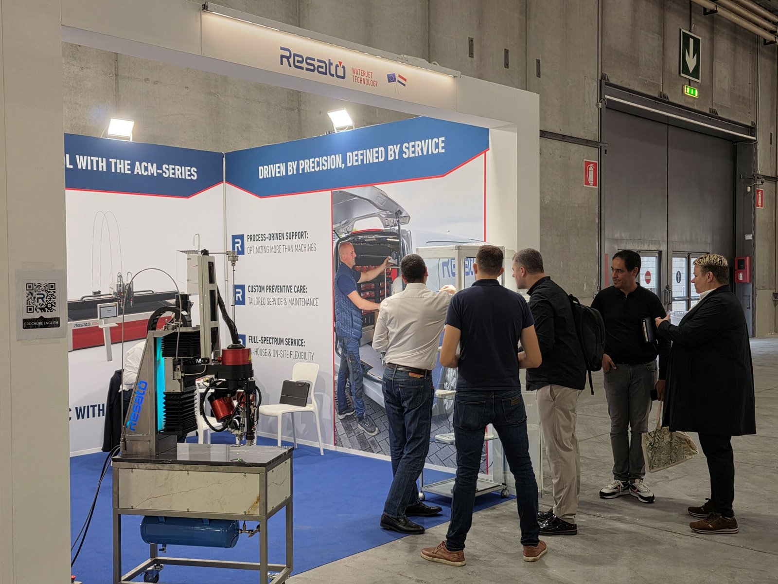 Het Nederlandse Resato Waterjet debuteerde op de vakbeurs in Verona. Het bedrijf uit Assen gaf voorlichting over de waterjets en demonstreerde de nieuwe 2,5D snijkop. Veel bezoekers bleven staan bij de kop, gebiologeerd kijkend naar de laserstraal.
