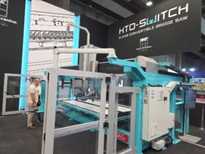 Marmo Meccanica staat bekend als een producent van kantenpolijstmachines. Maar de Italiaanse fabrikant produceert ook al sinds jaar en dag brugzagen. Op de vakbeurs in Verona was de HTO-SWITCH te zien, een hybride brugzaagmachine met de voordelen van een monobloc- én van een traditionele opbouw. De machine kan snel worden geïnstalleerd vanwege de monobloc-opbouw. Door de ondersteuningselementen te verwijderen wordt een traditionele opbouw verkregen. Hierdoor wordt de machine pratischer, ergonomischer en veiliger te bedienen.