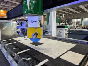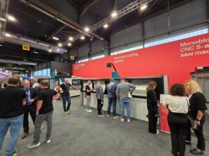 De eveneens Italiaanse machinefabrikant Breton had ook een première voor het vakpubliek: de Breton Nexa. Dit vijfassig cnc-bewerkingscentrum met een monobloc-opbouw is gespecialiseerd in de bewerking van dikke platen. Op de stand was ook veel belangstelling voor de ‘hit’ van dit moment van de Italiaanse fabrikant, de Breton Trinity. Dit is een gecombineerde zaagmachine én waterjet.