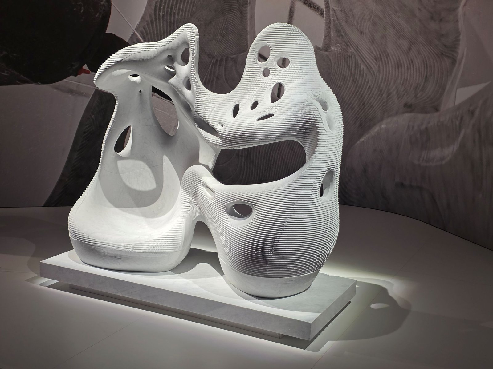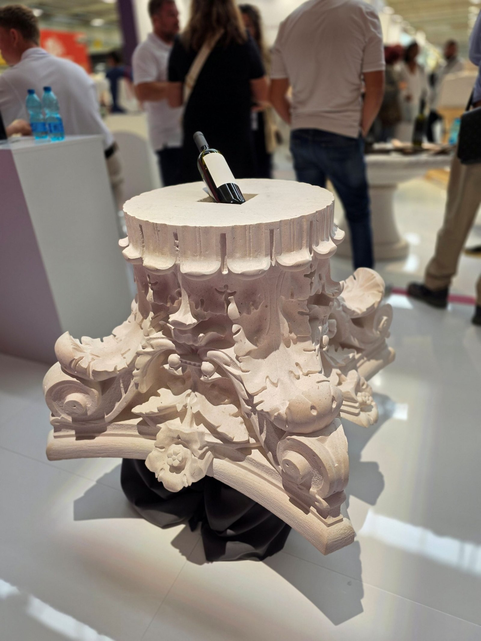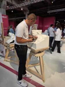 The Italian Stone Theatre is elk jaar een onderdeel van Marmomac om naar uit te kijken. Ondanks dat de expositie kleiner is geworden en van hal 1 naar een deel van hal 10 is verplaatst, valt er nog steeds genoeg te genieten. Hier zijn voorbeelden te zien van samenwerkingen tussen ontwerpers, natuursteenleveranciers en machinefabrikanten. Fascinerende beelden, een prachtige stoel van marmer, een pagode bekleed met kleurrijk marmer met eronder een beeld uitgefreesd met behulp van een robot. Te veel om te beschrijven. Inventief was de presentatie waarbij met behulp van een 3D-printer van natuursteenafval een nieuw stenen sculptuur werd geprint.