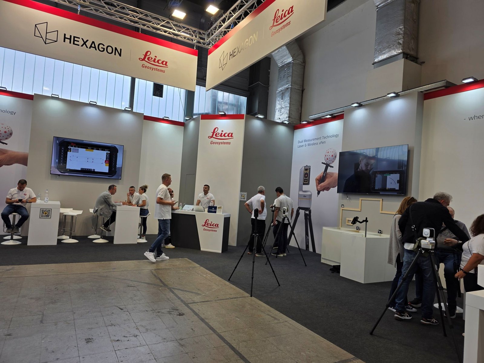 Ook op meetgebied was het Zwitserse Leica Geosystems aanwezig. Op de stand werd geen karaoke gehouden, maar het betrof een demonstratie van ICON Trades, meetapparatuur dat gebruik maakt van sensoren en kunstmatige intelligentie om de bol van de vPen – die wel heel erg op een microfoon lijkt – tijdens het meetproces nauwkeurig te lokaliseren en te volgen.