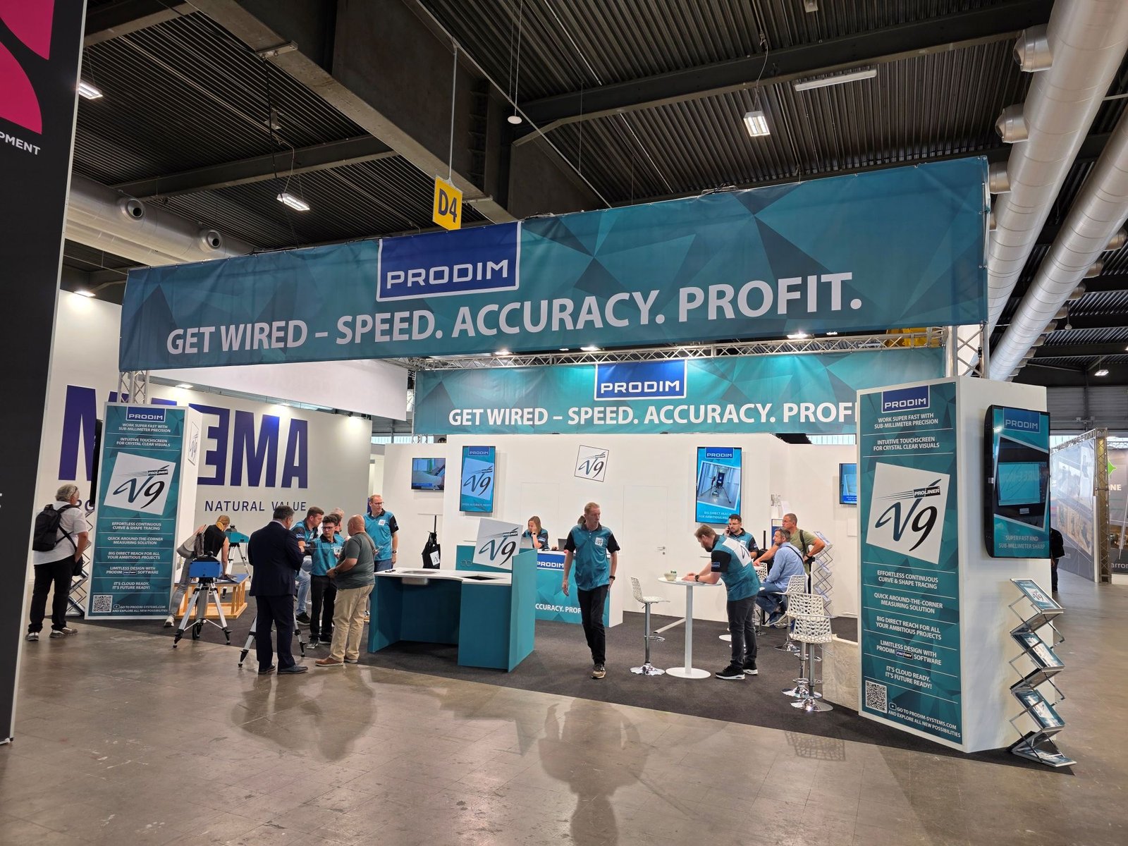 Het Nederlandse Prodim had ook een primeur in Verona te presenteren: de Proliner V9. Deze meetmachine is voorzien van de nieuwste draadtechnologie van het bedrijf uit Helmond. Er kan volgens de uitleg supersnel mee worden gewerkt met sub-millimeter precisie. De machine is voorzien van een nieuw display, dat zelfs in fel zonlicht een goed beeld geeft. Met behulp van het gepatenteerde Quick IPT kunnen ook moeilijk bereikbare punten worden ingemeten.