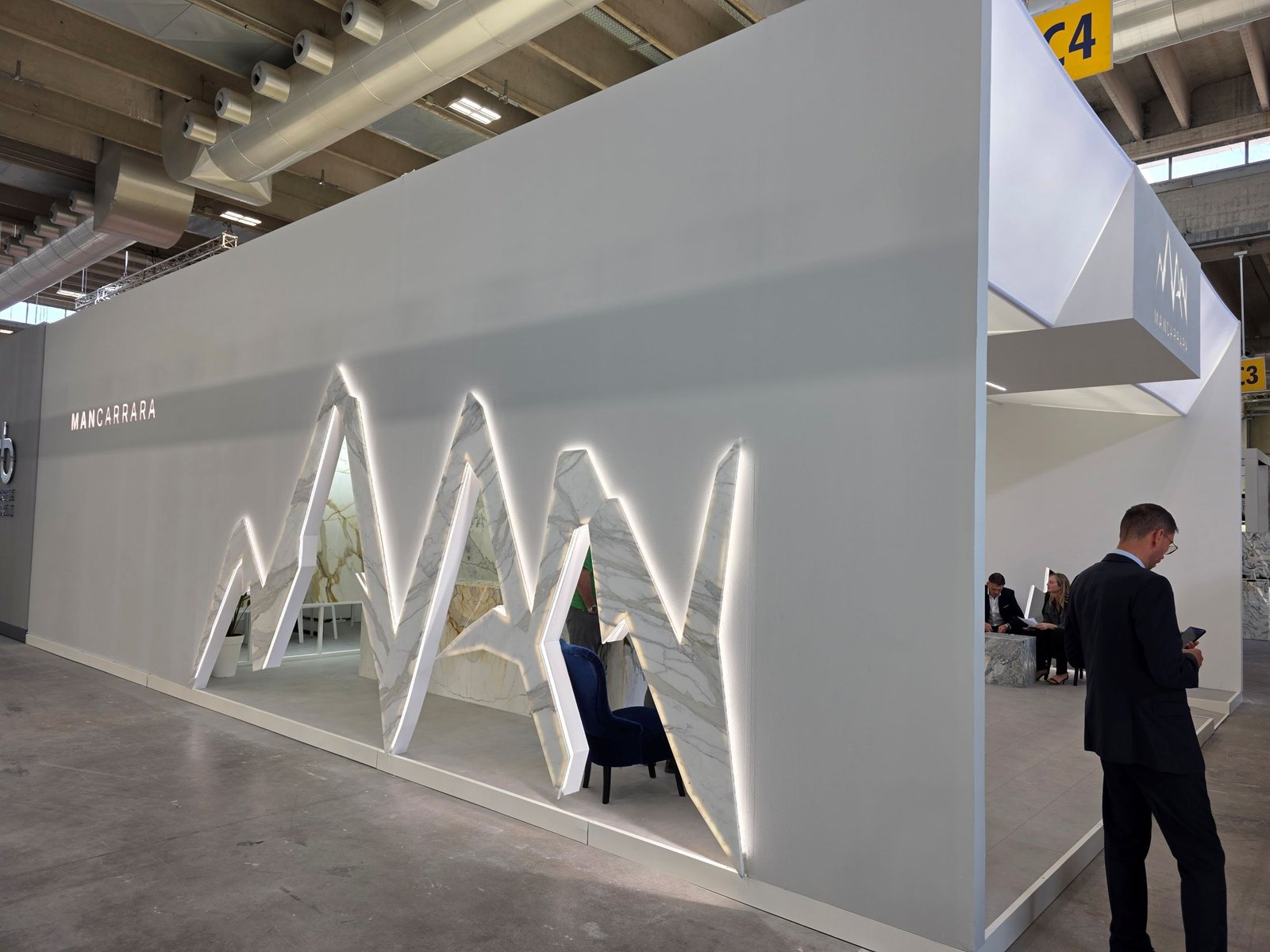 In dezelfde hal was er behoorlijk wat aanloop te zien bij de stand van Pierre Bleue Belge, de enige Belgische blauwe hardsteengroeve in Verona. Wellicht door het ontbreken van de stand van de concurrerende Carrières du Hainaut, die ervoor had gekozen te investeren in de eigen groeve en de Europese klanten daar uit te nodigen.