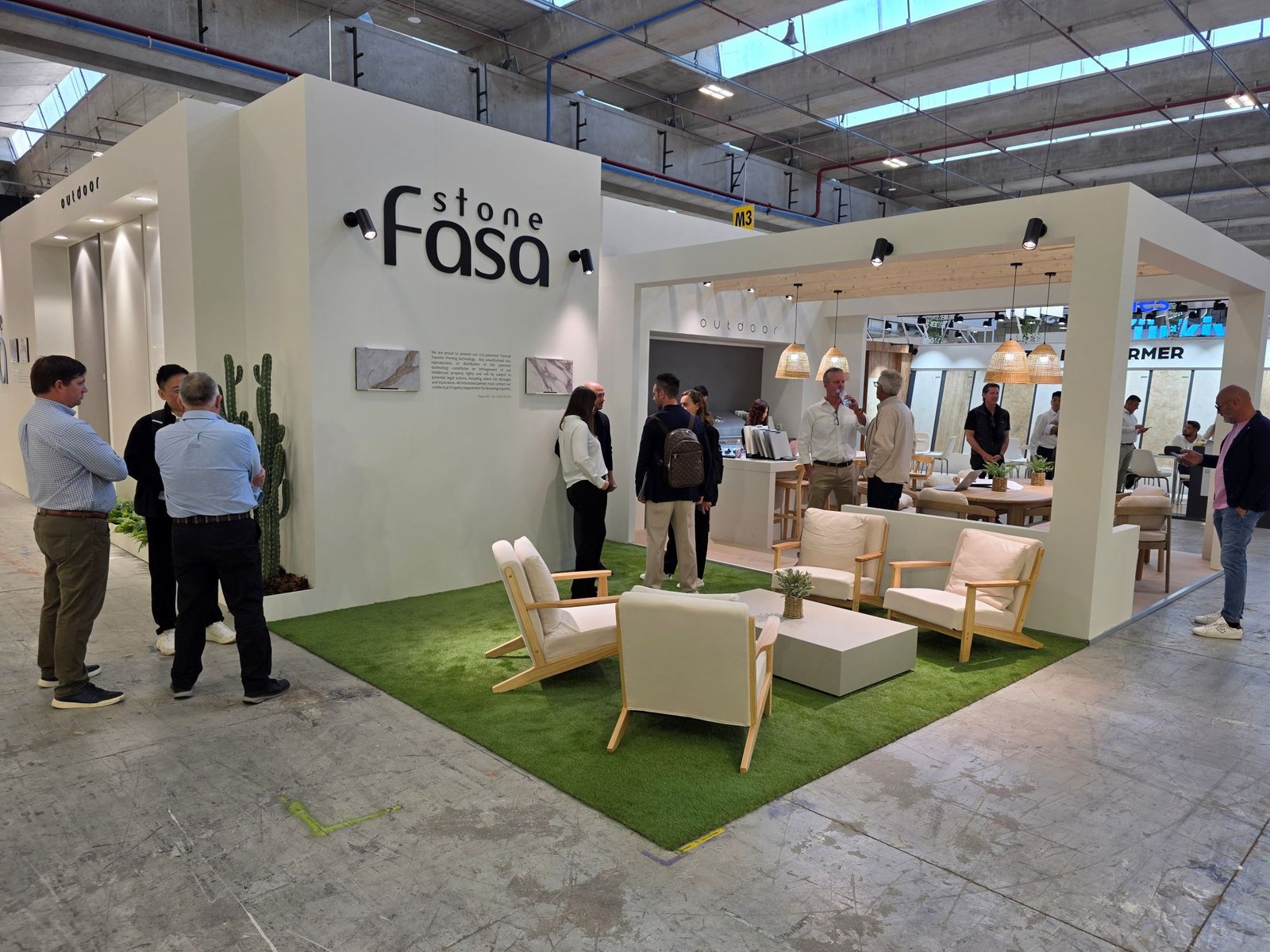 In hal 10 lag de nadruk in de stand van FASA STONE op de outdoortoepassingen van de Chinese fabrikant, gepresenteerd onder de naam Mimetech. Deze collectie bevat Phi Outdoor, gemaakt volgens de fullbody techniek. Hierdoor loopt het ontwerp, de kleur en de adering door de gehele dikte van de plaat. Phi Outdoor is beschermd met NEOS-oppervlaktetechnologie en biedt zeer goede weerstand tegen vlekken, krassen en dagelijkse slijtage. Phi Outdoor is in zes varianten verkrijgbaar.