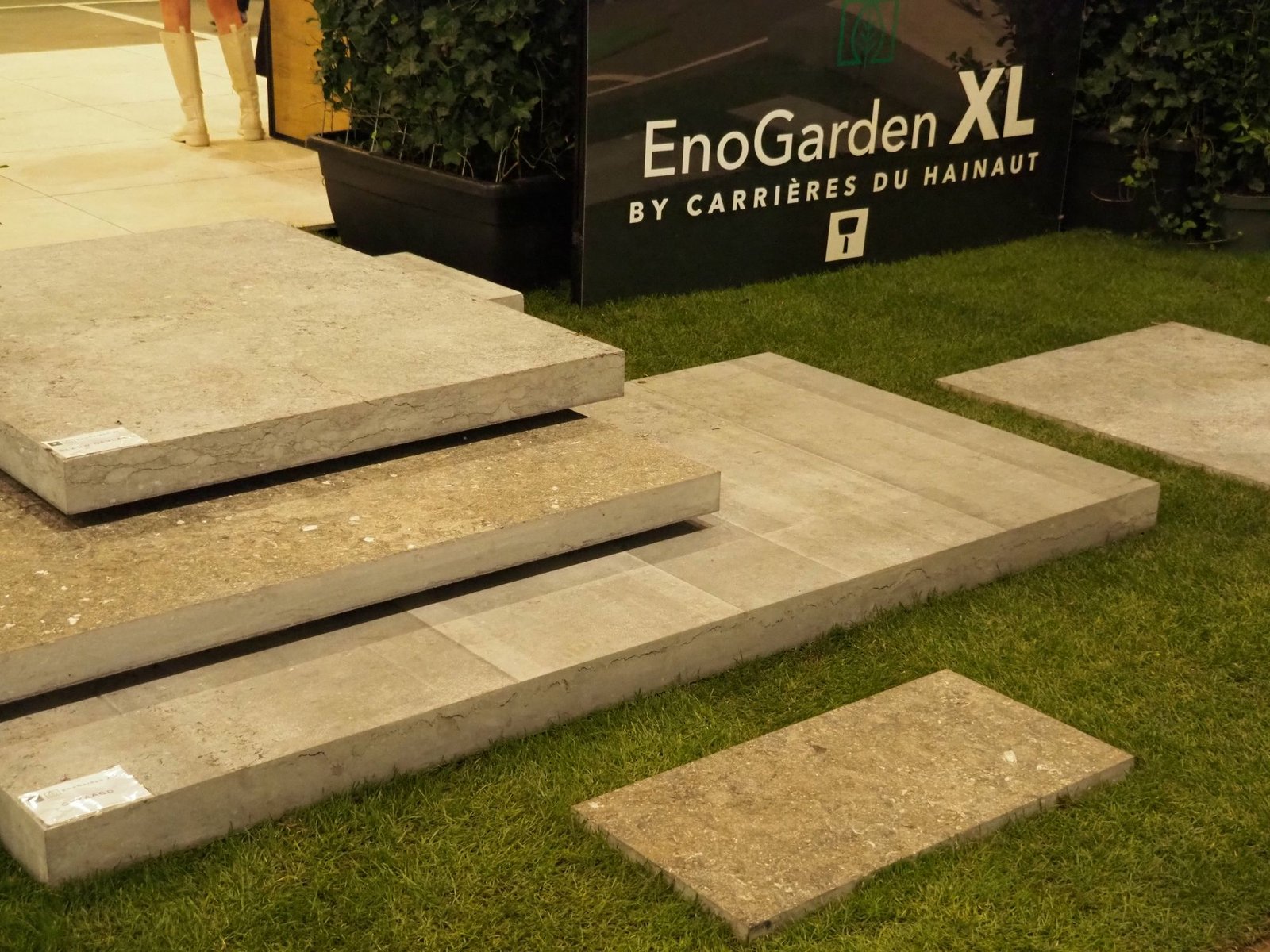 In een gezamenlijke presentatie met Trivium introduceerde Carrières du Hainaut een speciaal ontwikkelde nieuwe lijn voor de tuin: EnoGarden XL. Trivium gaat de nieuwe lijn onder hoveniers en landschapsarchitecten promoten en levert Enogarden XL exclusief in Nederland. Deze lijn is bedoeld om Belgisch hardsteen op een bijzondere manier in de tuin toe te passen, met verschillende formaten en diktes, zodat de meest unieke creaties voor de tuin en oprit zijn te ontwerpen. EnoGarden XL is leverbaar in de afwerkingen gezaagd, blauw gevlamd en enoluce, en in diverse afmetingen uiteenlopend van 40 x 80 cm tot 120 x 240 cm en diktes variërend van 3 tot 10 cm.