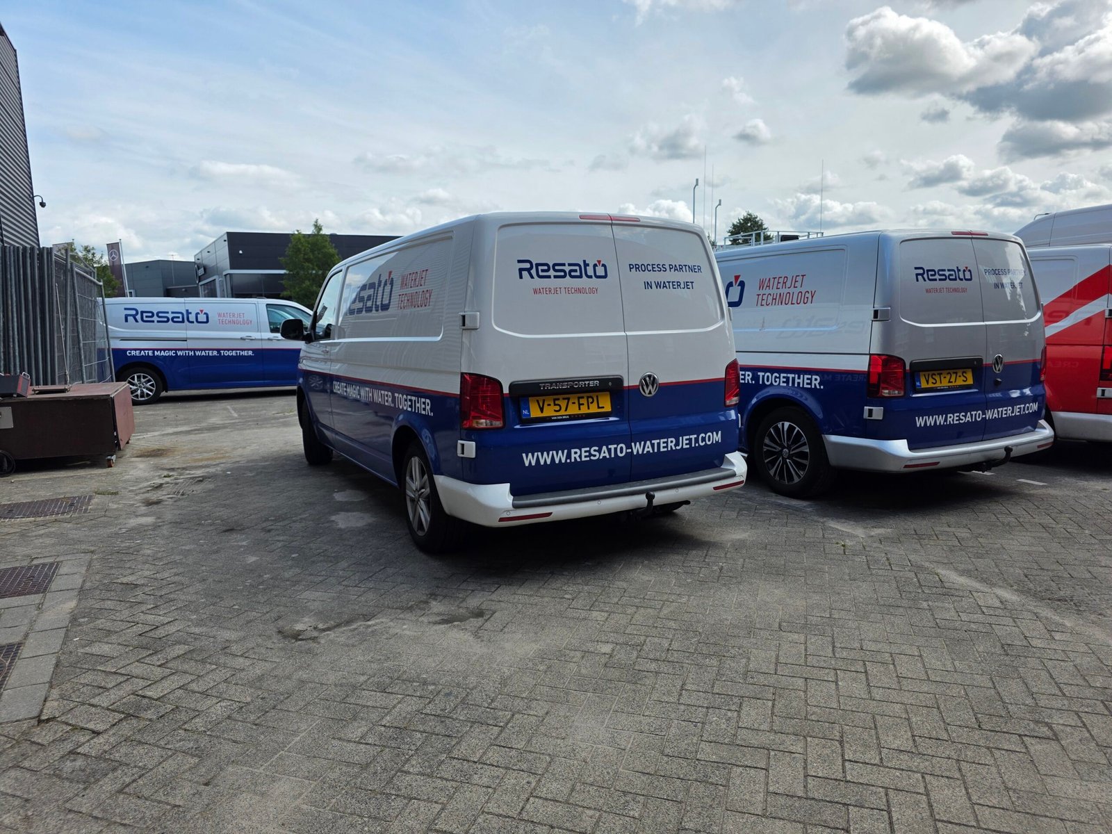 Maar de service wordt uiteraard zo nodig bij de klant zelf uitgevoerd. Hiervoor heeft Resato Waterjet een eigen wagenpark van zes servicebussen waarmee kant-en-klare snelle service kan worden geleverd. “Persoonlijk contact is erg belangrijk, en vaak moet je iets voordoen voordat de klant het begrijpt. Zo kreeg ik laatst een klacht te horen over een lekkend sealtje. Ik ben ter plekke gaan kijken en zag dat de klant het oude sealtje met vieze handen van de tafel afhaalde, een nieuw sealtje pakte en dat op de tafel monteerde. Dit zonder zijn handen te wassen intussen. Ik verving het sealtje met schone handschoenen aan en het euvel was direct verholpen.”