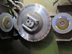 In de loop der tijd zijn er steeds nieuwe materialen op de markt gekomen of producten die opeens erg ‘in’ kwamen. Deze materialen konden vaak niet op de al vertrouwde manier worden bewerkt. “Dan moet je je als producent aanpassen”, zegt Jan stellig. “Het eerste jaar dat composiet op de markt kwam, was het een en al problemen. Spanning in de platen zorgden voor breuken bij het zagen, beetje vergelijkbaar met toen Dekton op de markt kwam. De platen klapten gewoon van de machine af. Dan moet je de samenstelling van je segmenten aanpassen, bijvoorbeeld door een andere diamantsamenstelling te kiezen. De lichte kleuren van Dekton zijn nu zachter dan de donkere kleuren. Die zijn echt hard. Daar moet je dus je zaagblad op aanpassen.”