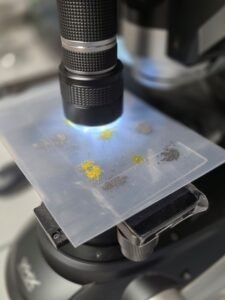 Jan gaat voor de productieruimte in. Hij laat alle stappen van het productieproces zien. “Dit hier is de mixer”, vertelt hij, terwijl hij naar een machine wijst waarin in een grote trommel de bestanddelen worden gemengd. “Hierin wordt het diamantpoeder gemengd. Daar voeren wij overigens een enorm strenge controle op uit. Hierin kun je je namelijk onderscheiden.” In een kantoor naast de productieruimte laat hij zien wat hij ermee bedoelt. Daar staat een grote microscoop waarop verschillende diamantsamenstellingen worden bekeken. Op een computermonitor zijn de vergrote korrels te zien. “Hiermee controleren we de kwaliteit van het synthetische diamantpoeder. Dat gebeurt erg nauwkeurig, want deze kwaliteit bepaalt de kwaliteit van het segment dat op de zaag wordt aangebracht”, legt hij uit.