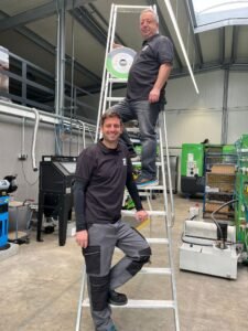 En Jan? “Waar mogelijk ben ik ook nog op de baan, klanten bezoeken. Ik wil nog graag feeling houden met de markt. Daarnaast leg ik mij meer toe op het ontwikkelen van nieuwe producten. Dat doe ik deels samen met Vincenzo, hiervoor ben ik één keer per maand in Duitsland. En de nieuwe producten testen we in onze locatie in België. We hebben hier speciaal  een brugzaag voor gekocht. Het geeft een enorme voldoening als het product eenmaal is ontwikkeld en goed is getest. Onze buren denken wel eens dat het bij ons een dolle boel is. Want als we een geslaagd nieuw blad hebben ontwikkeld, gaat hier op vrijdag de muziek aan en dan vieren we het luidruchtig”, lacht Jan.