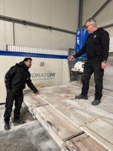 Quinten noemt de huidige trend waarin Taj Mahal helemaal ‘hot’ is. “Kwartsieten als Taj Mahal zijn gewoon knalhard om te verzagen. Een prachtig materiaal, maar het moet wel met goede gereedschappen worden bewerkt. Ik heb platen in de vlam zien vliegen, omdat de zaag er niet doorheen kwam. Wij hebben zeven jaar testen uitgevoerd en hebben nu voor kwartsieten het perfecte zaagblad ontwikkeld.”